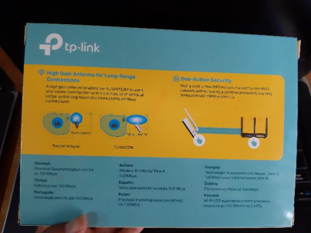 Dựa trên công nghệ IEEE 802.11n, TL-WN722N cho thấy khả năng giảm mất mát dữ liệu khi truyền trên các khoảng cách xa và xuyên qua các vật cản trong một văn phòng nhỏ hoặc căn hộ lớn, thậm chí trong một tòa nhà bê tông cốt thép. So sánh với các sản phẩm 54M, TL-WN722N cung cấp hoạt động tốt hơn, cho phép bạn có một trải nghiệm thú vị hơn, bao gồm chia sẻ dữ liệu, xem các dòng truyền thông.