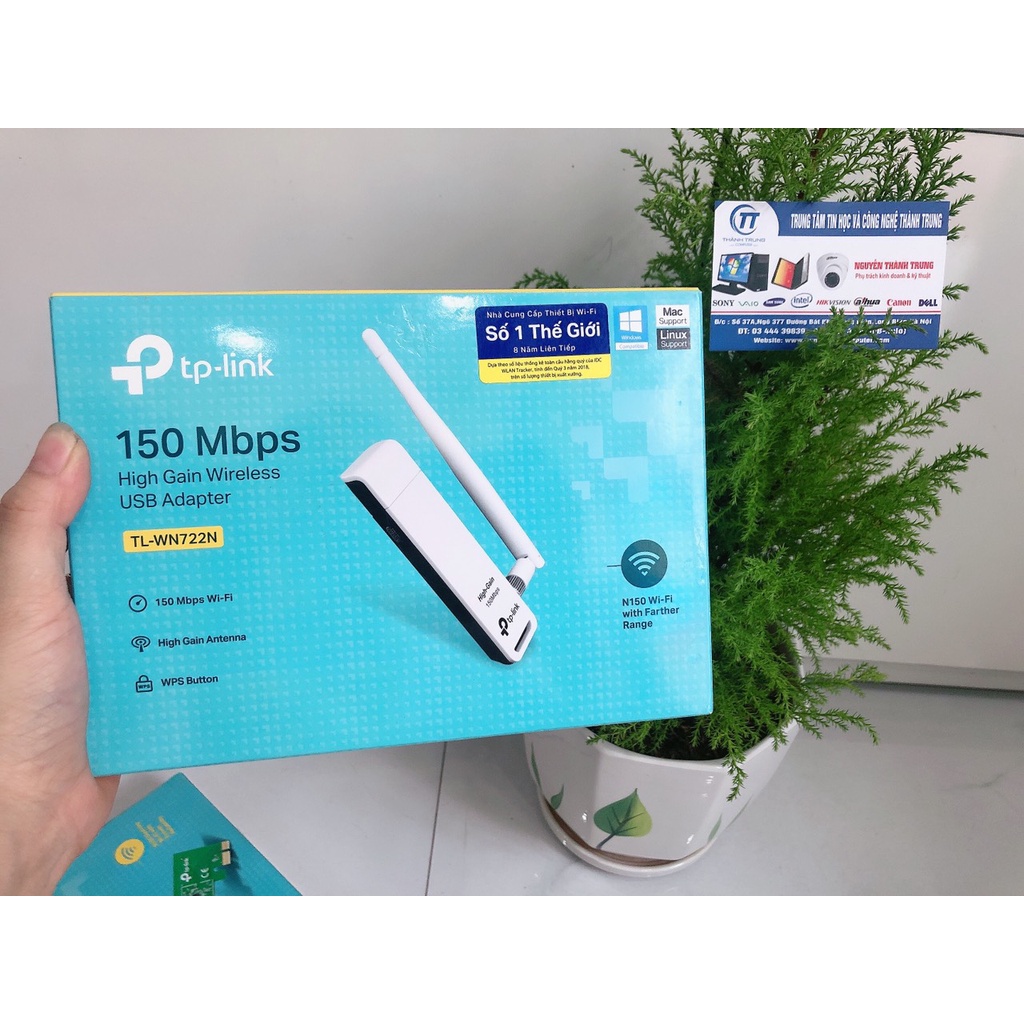 USB Wifi (high gain) TP-LINK TL-WN722N hỗ trợ người dùng cài đặt các máy tính hoặc máy tính xách tay ở vị trí thuận tiện nhất có sẵn, mà không cần phải có dây cáp mạng. Sản phẩm tương thích với các thiết bị theo chuẩn 802.11b/g/n, thiết bị cung cấp tốc độ không dây lên đến 150Mbps, tuyệt vời hơn cho việc chơi game trực tuyến hoặc thậm chí cả các dòng video.Tính năng sản phẩm: