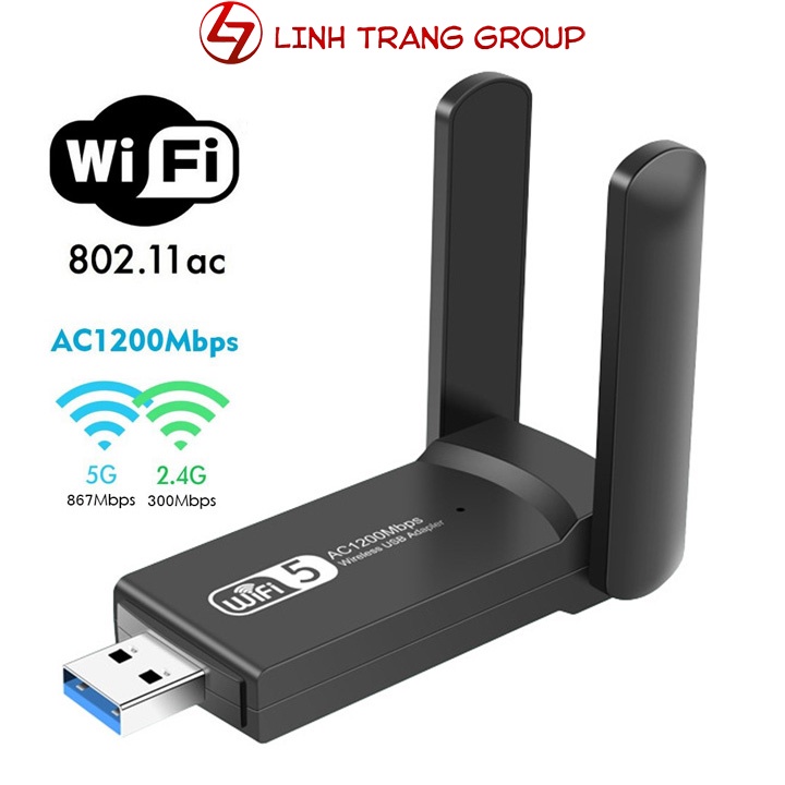 WiFi chuẩn 802.11ac băng tần 2.4GHz & 5.8GHz, băng thông tổng cộng 1200Mbps (cần gắn cổng USB3.0 trở lên)