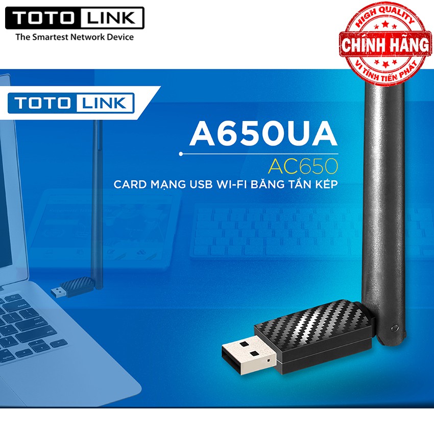 Máy tính & Laptop > Thiết Bị Mạng > Bộ Thu Wifi || USB Thu WiFi Băng Tần Kép 5Ghz và 2.4Ghz - TotoLink A650UA ( Chuẩn MU-MIMO / AC650 ) tốc độ 650MbpsCòn hàng