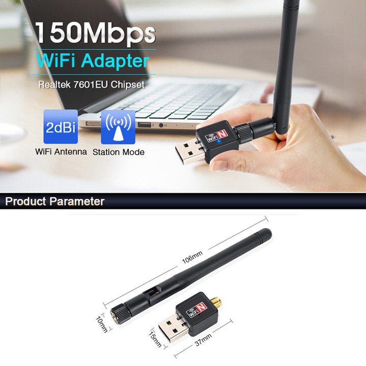 Máy tính & Laptop > Thiết Bị Mạng > Bộ Thu Wifi || USB thu wifi cho máy tính 802.11 có Anten - EsmarthomeCòn hàng