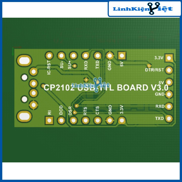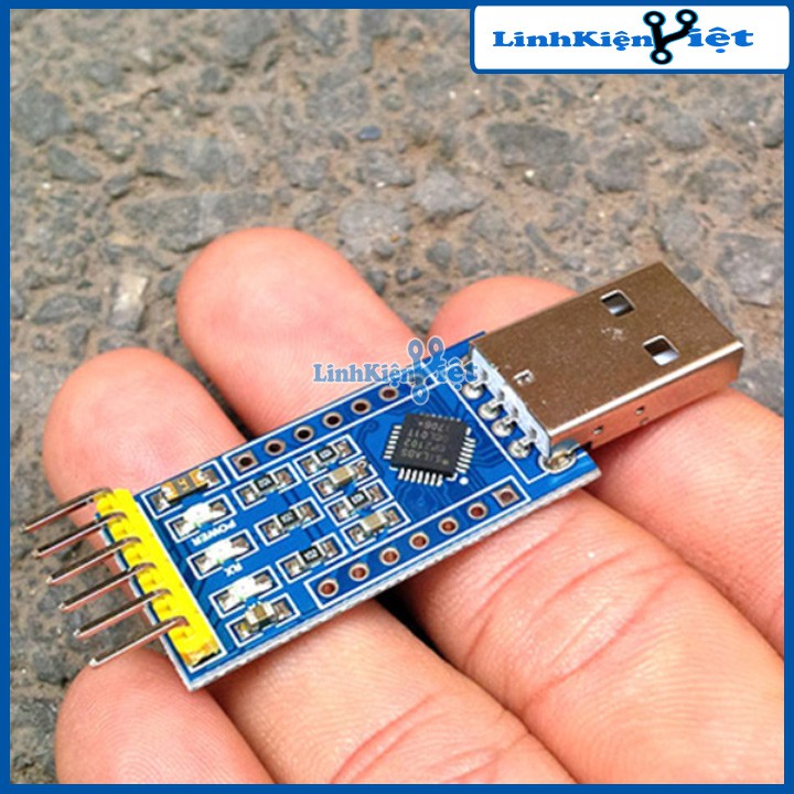 Trên mạch có 5 cổng đầu ra: 3.3V RST 5V Tx Rx Gnd. Trong đó chân RST được sử dụng để ngắt kết nối USB của module với máy tính.
