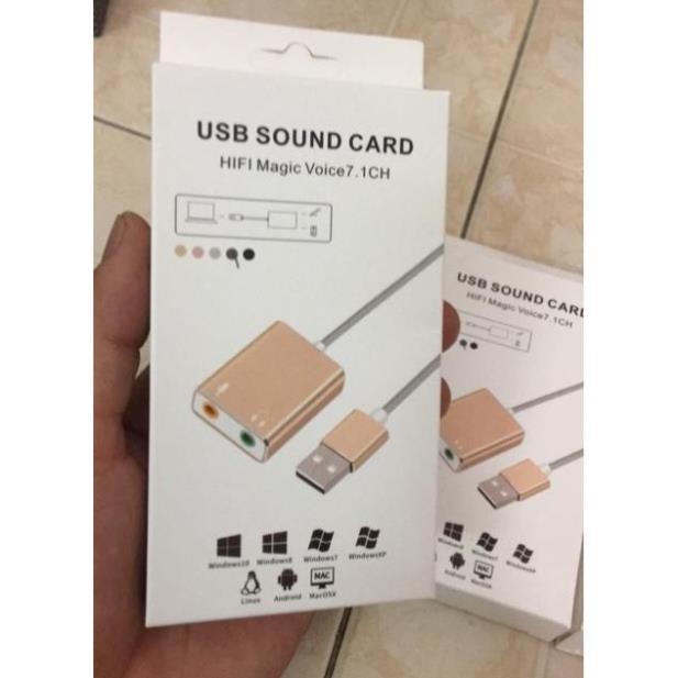 Usb sound card. Hỗ trợ chuyển tín hiệu từ usb sang tín hiệu âm thanh hifi magic voice 7.1. Tương thích với mọi loại window. Bọc nhôm đẹp và chắc chắn. Bạn nào cần nâng cấp hay thay thế vui lòng đặt hàng nhé.#usblan #usbbluetooth #usbtosound