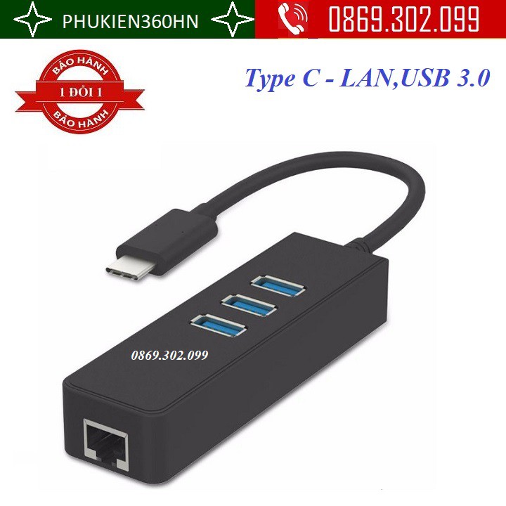 Máy tính & Laptop > Phụ Kiện Máy Tính > Bộ chia cổng USB & Đọc thẻ nhớ || USB Type C sang LAN kèm 3 cổng USB 3.0 HubCòn hàng