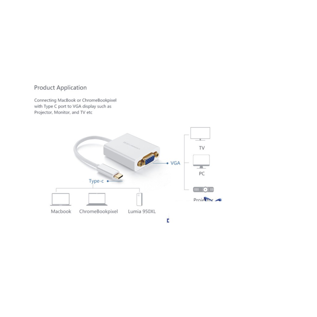 - Cáp USB Type-C to VGA Ugreen cao cấp thích hợp cho phòng họp, hội nghị, trường học, bệnh viện cần sử dụng nội dung hiển thị ra màn hình lớn.