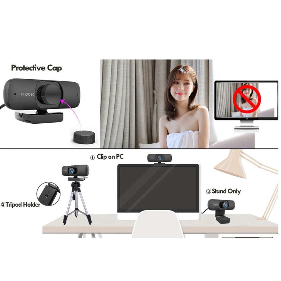 Máy tính & Laptop > Phụ Kiện Máy Tính > Webcam || USB Webcam 1080P có mic cho laptop và máy tính để bànCòn hàng