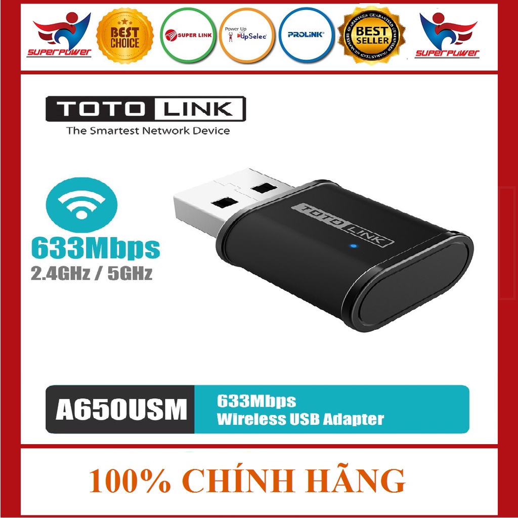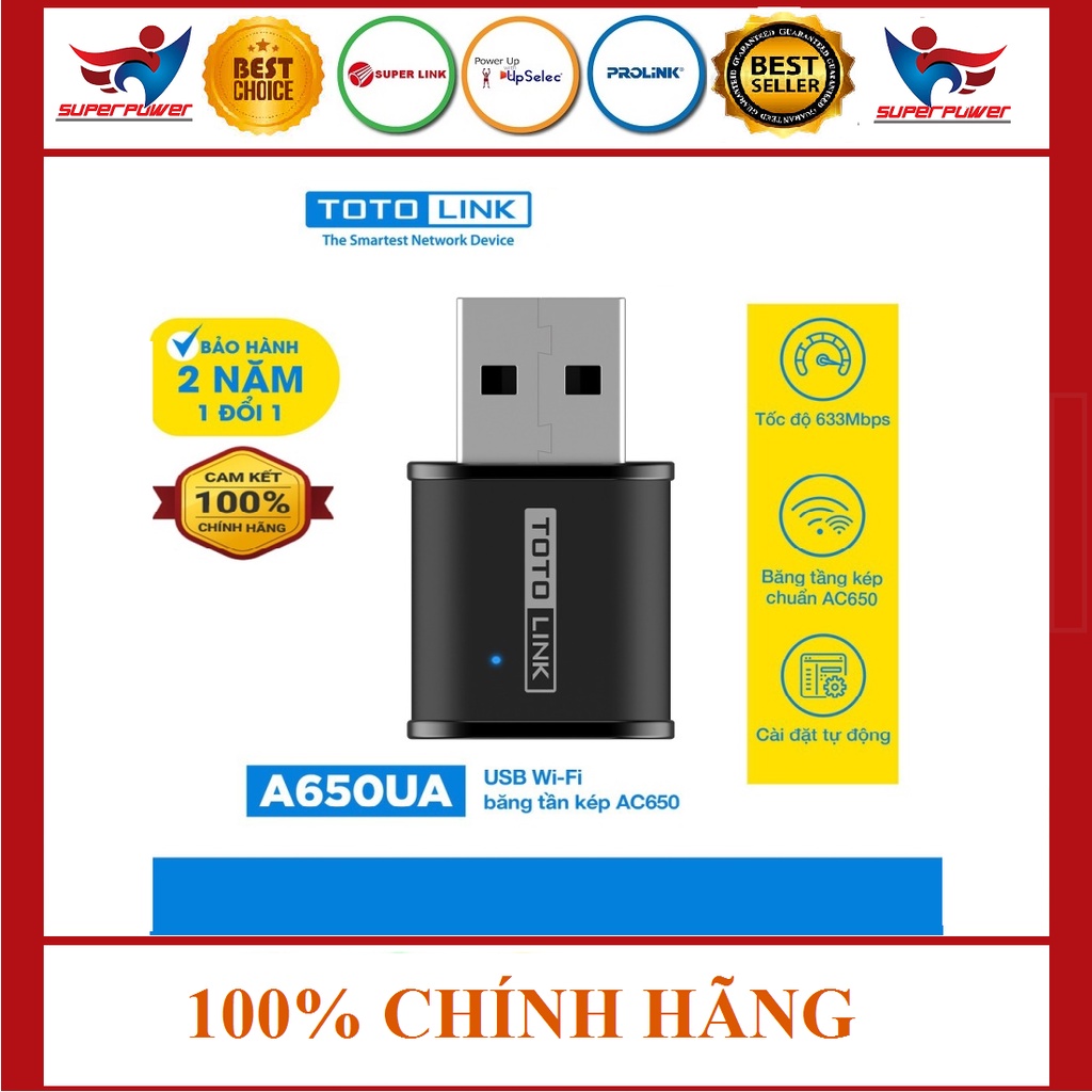 Máy tính & Laptop > Thiết Bị Mạng > Bộ Thu Wifi || USB Wi-Fi băng tần kép chuẩn AC650 Totolink A650USMCòn hàng