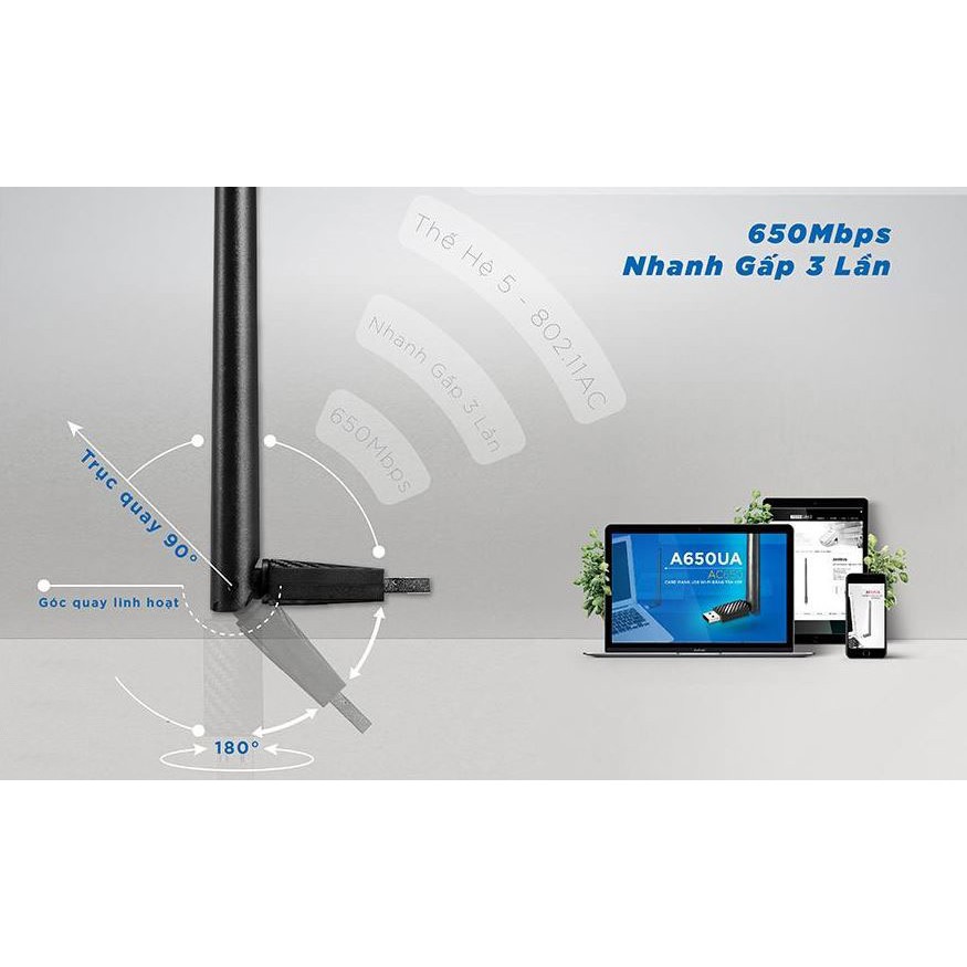 Máy tính & Laptop > Thiết Bị Mạng > Bộ Thu Wifi || USB Wi-Fi Totolink A650UA băng tần kép AC650 - Hàng Chính HãngCòn hàng