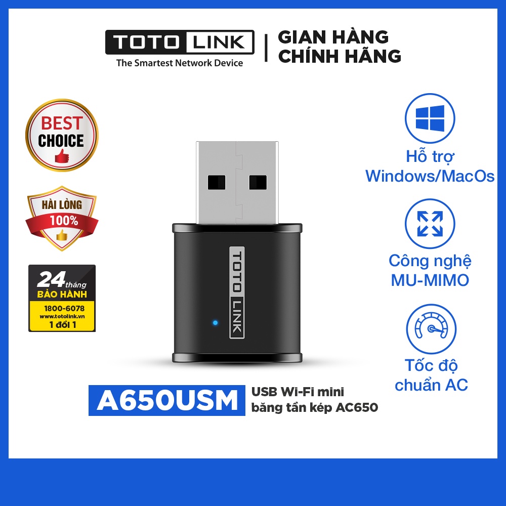 Usb wifi 5ghz và 2,5ghz băng tần kép AC650 TOTOLINK A650USM