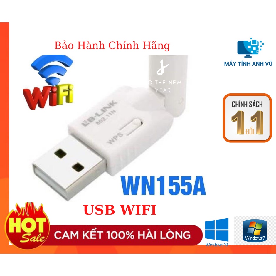 - Sản phẩm chỉ dùng được cho Máy tính bàn và Laptop, không hỗ trợ tivi ***USB Thu Wifi có râu LB Link BL- WN155A