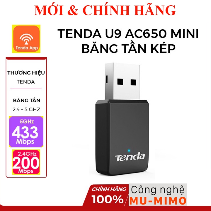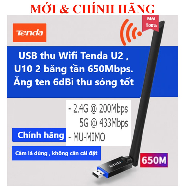 #TendaU10 là #USBthuWiFi và USB thu WiFi 2 băng tần chuẩn #AC650 tự động cài đặt