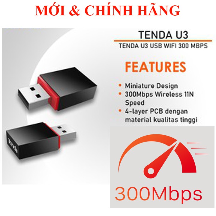 Với tốc độ WiFi lên đến 300Mbps và công nghệ MIMO, Tenda U3 giúp bạn tận hưởng kết nối WiFi nhanh và ổn định, trải nghiệm làm việc và giải trí mượt mà.