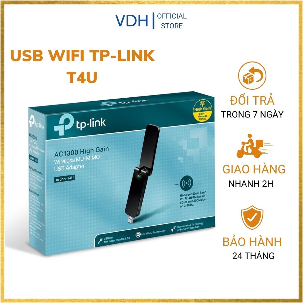 Máy tính & Laptop > Thiết Bị Mạng > Bộ Thu Wifi || Usb wifi TP-Link chuẩn AC1300 Mbps USB adapter archer băng tần kép, usb thu wifi 5ghz tplink T4U cho pc laptop VDH STORECòn hàng