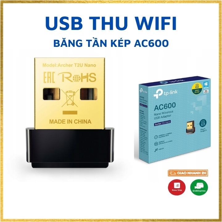 Usb wifi Tp link T2U Nano băng tần kép chuẩn AC Archer AC600 thu wifi không dây cho máy tính pc laptop chính hãng