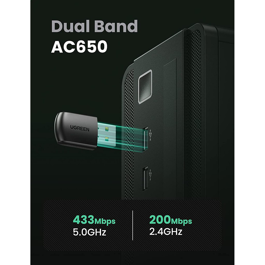 USB Wifi UGREEN 20204 Băng tần kép 5G & 2.4G - CHÍNH HÃNG