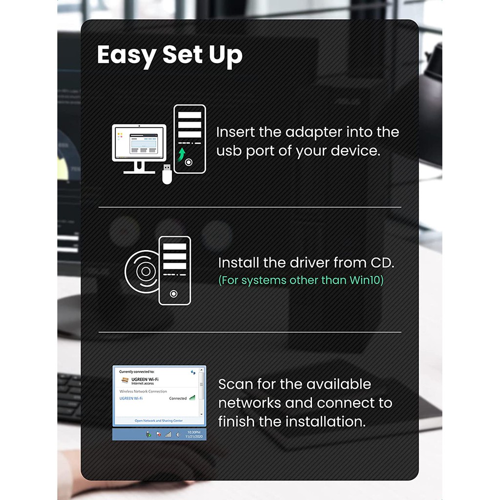 Tính năng: Thu và phát sóng Wifi 5G&2.4G cho máy tính, laptop,...
