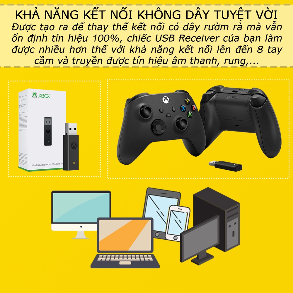Bộ sản phẩm USB Wireless receiver Slim cho tay cầm xbox one S/xbox series X, USB xbox series XSản phẩm chính hãng Microsoft Xbox thiết kế riêng cho dòng tay cầm xbox.