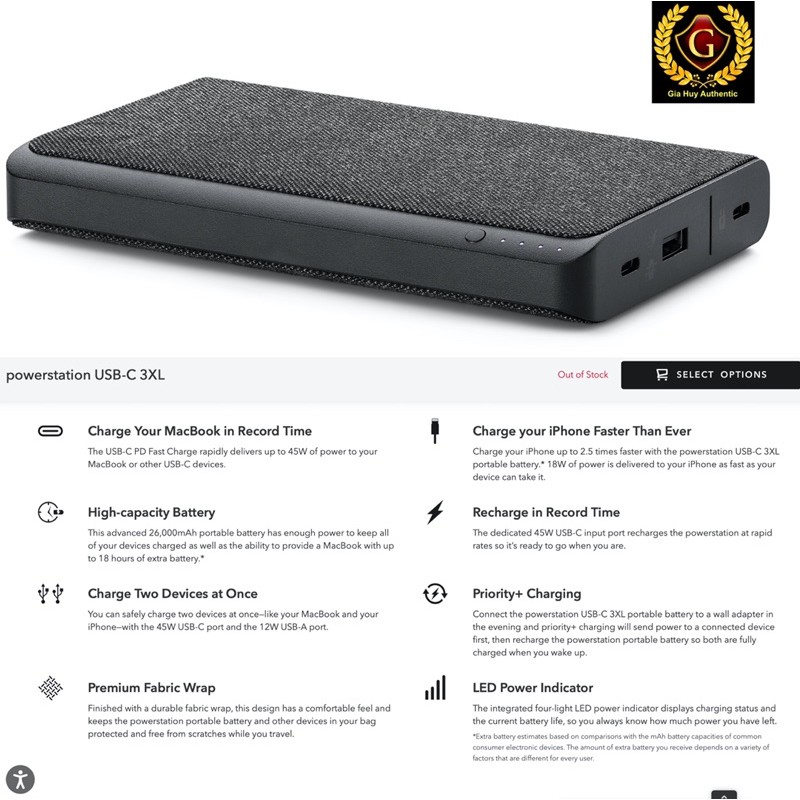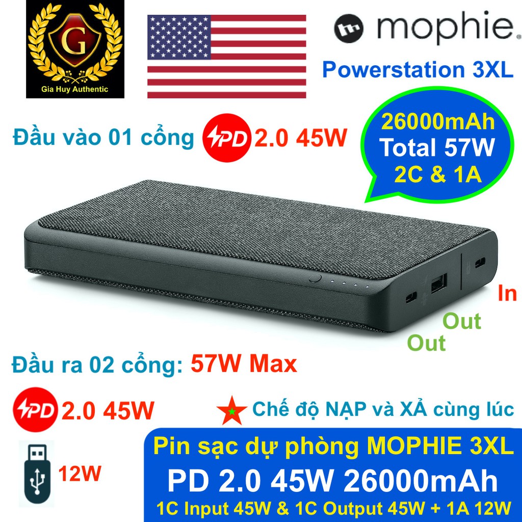 Điện Thoại & Phụ Kiện > Pin sạc dự phòng > >20000mAh || (Used) Pin sạc dự phòng Macbook, iPad, iPhone 12 Series, S10, Note 10 MOPHIE PowerStation 3XL 26000mAh PD 45W (2C + 1A)Còn hàng