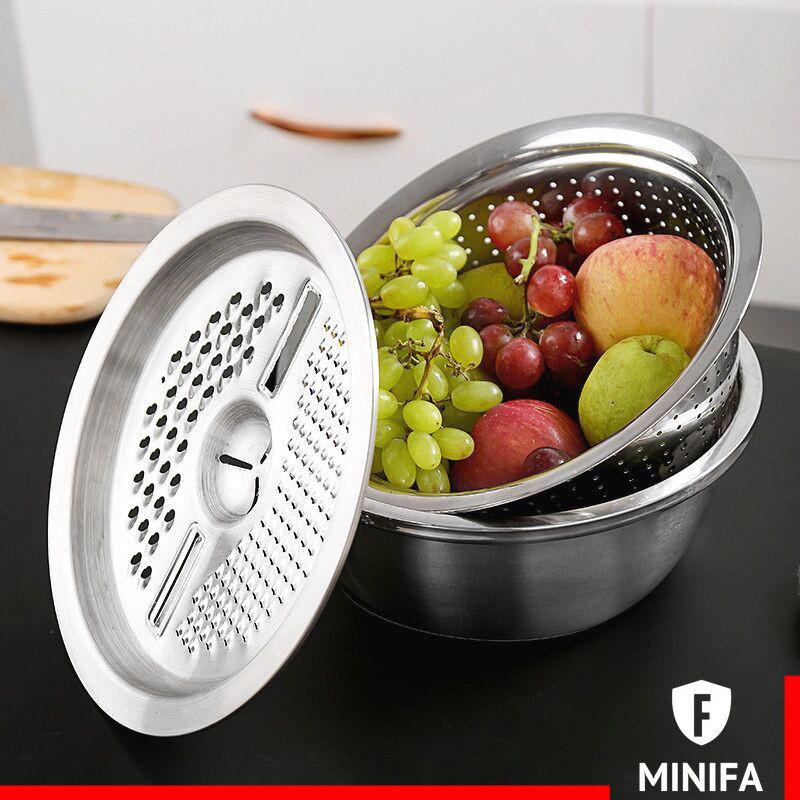 [Ưu Đãi] Rổ Inox Nạo Củ Quả Đa Năng 3 trong 1