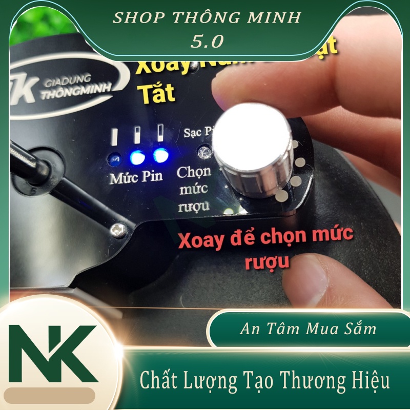 03. Xoay núm Bật công tắc và chỉnh mức rượu trên công tắc