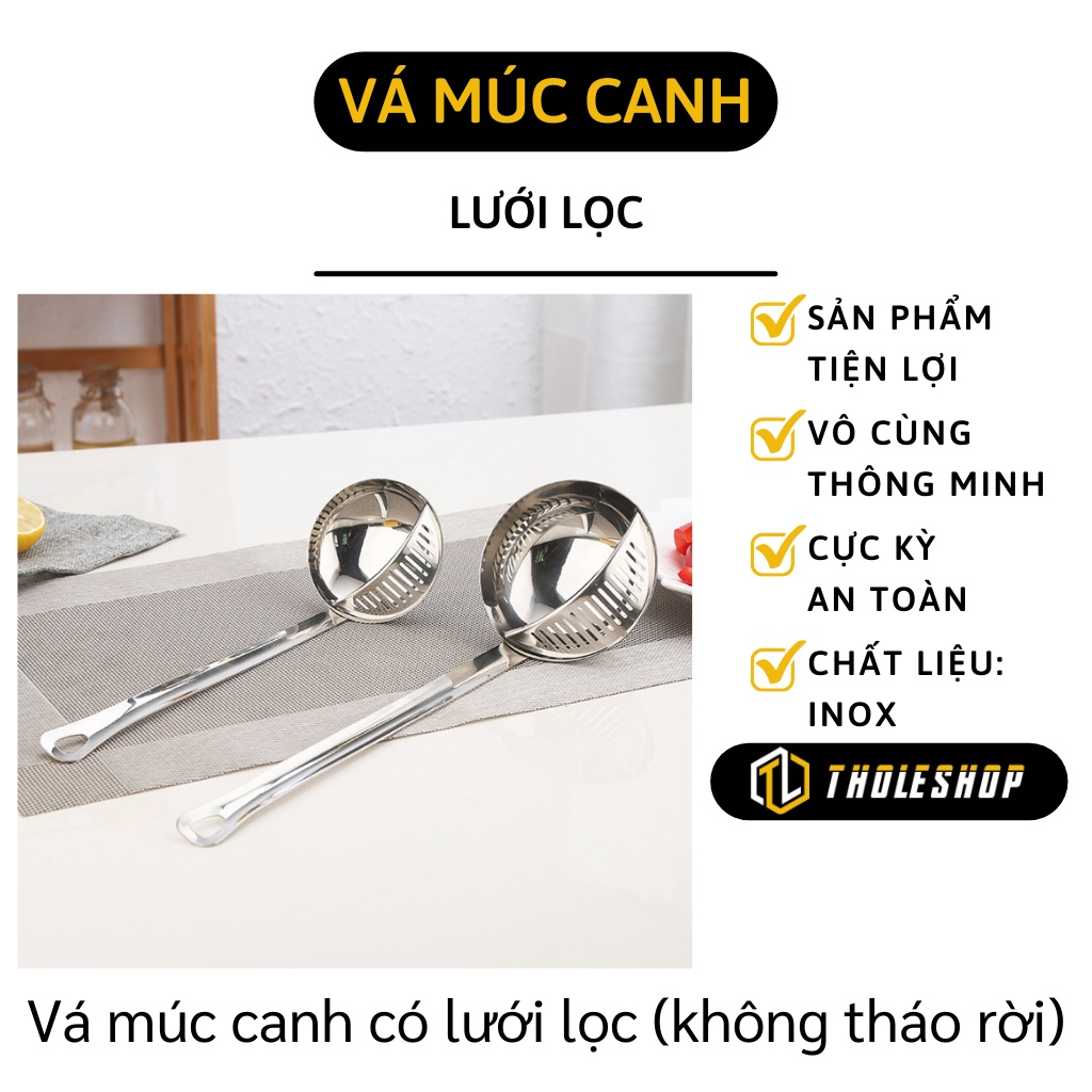 - Vá múc canh có lưới lọc (không tháo rời) vừa có thể múc canh và vừa vớt cái rất tiện lợi, đặc biệt khi ăn lẩu giờ bạn chỉ cần sử dụng 1 chiếc vá thông minh này