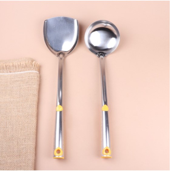Nhà cửa & Đời sống > Dụng cụ nhà bếp > Cây vét bột & đồ gắp thức ăn || Vá đặc, vá thủng và xẻng inox cán bọc nhựa vàng cao cấp anhduonghomekitCòn hàng