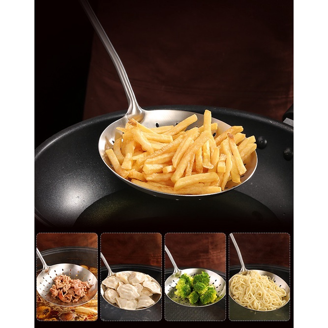 Vá Vợt lỗ lớn inox 304 vớt thức ăn đa năng phong cách Hàn Quốc - SSGP - 42x16cm 308g