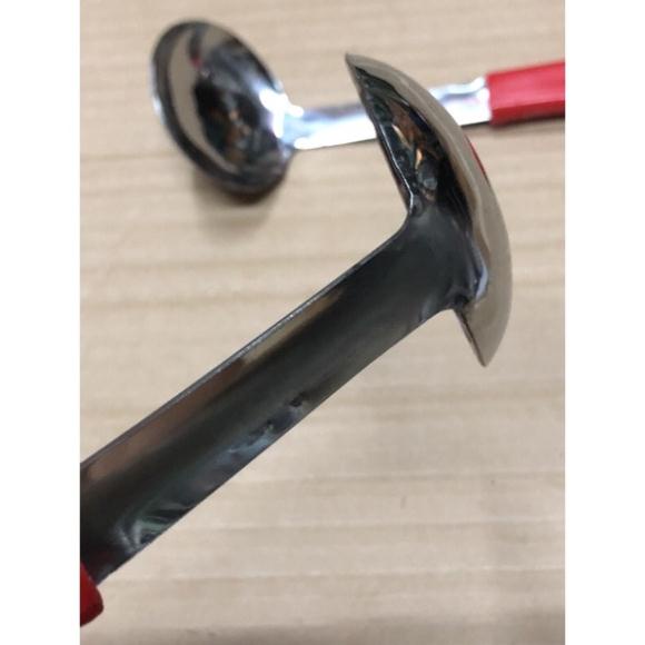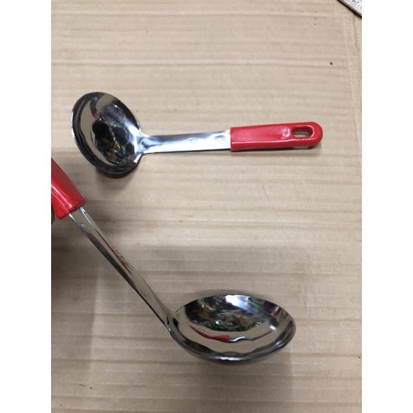 Vá canh inox nhỏ cán nhựa đúc liền cán màu đỏChất liệu: 100% inox 304, cán nhựa cứng cách nhiệt chắc chắn
