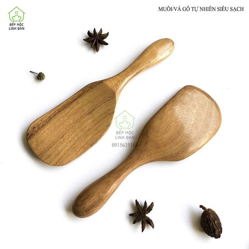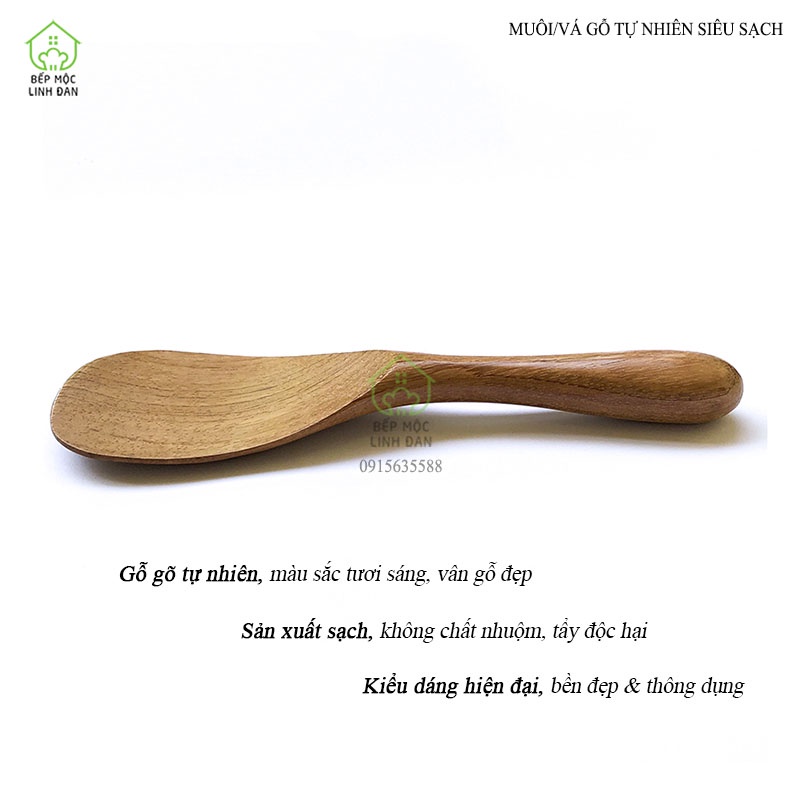 Muôi (vá) làm từ gỗ gõ tự nhiên, không ngâm tẩy hóa chất, có ưu điểm chất gỗ cứng bền, không dễ bị nứt vỡ hay xước dăm; vân gỗ đẹp, có khả năng chống lại mối mọt cao và chịu được nhiệt độ cao khi xào nấu, không tiết ra chất độc khi gặp nhiệt độ cao.🌏 THÔNG TIN SẢN PHẨM: