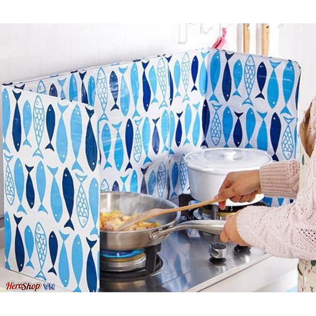 Vách Ngăn Tấm Chắn Chống Văng Dầu Mỡ Inox Hình Cá Giữ Gìn Vệ Sinh Bếp