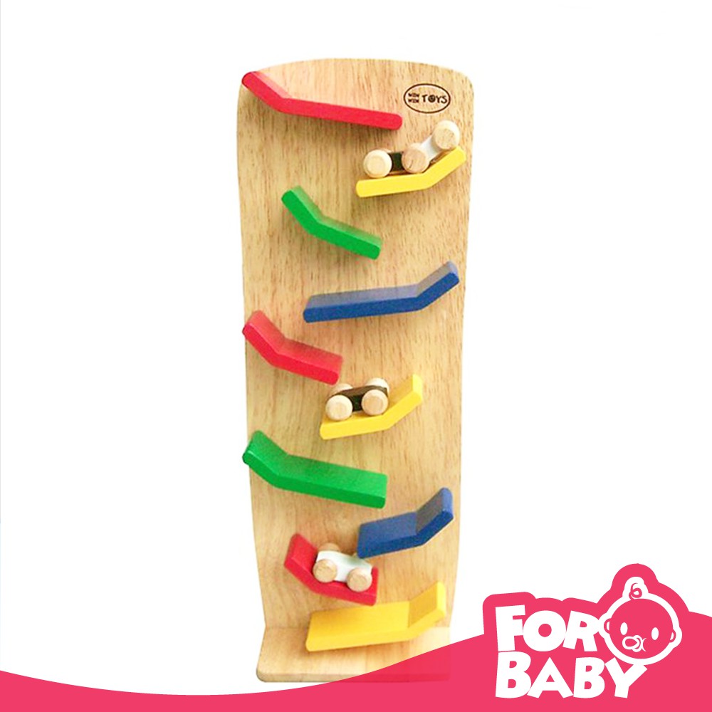 Đường đua trên vách núi gồ ghề, nhiều màu sắc như một chuỗi dzic dzac quanh co, uốn lượn thật lạ lẫm.Đây là trò chơi động, kích thích tính tò mò, ưa khám phá những điều mới lạ của các bé, giúp bé phát triển khả năng sáng tạo, tính kiên nhẫn và kỹ năng khéo léo khi thả các chiếc xe sao cho đồng bộ trên vách trượt để xe chạy về đích mà không bị văng ra ngoài.