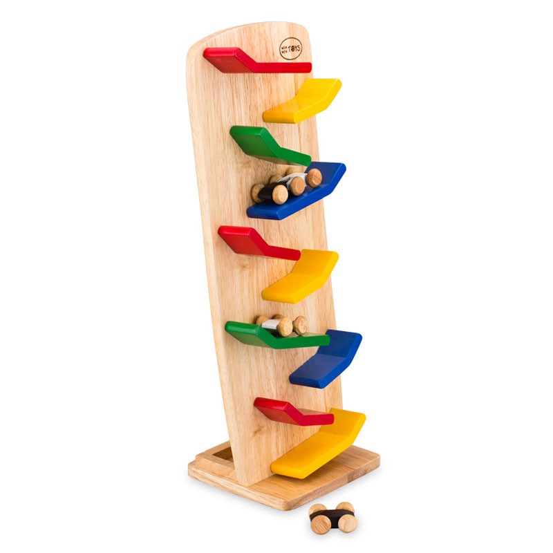 Đồ chơi giúp trẻ làm quen với được nhiều màu sắc khác nhau như đỏ, cam, vàng, xanh, trắng… kích thích thị giác trẻ phát triển. Việc thả những chiếc xe giúp bé rèn luyện kĩ năng cầm, nắm đồ vật, phát triển xúc giác. Qua đó rèn luyện cho bé khả năng tư duy, phân tích trong quá trình đếm, thả và quan sát những chiếc xe chuyển động, bé học cách kết hợp giữa tay và mắt, tạo sự khéo léo, nhanh nhẹn.