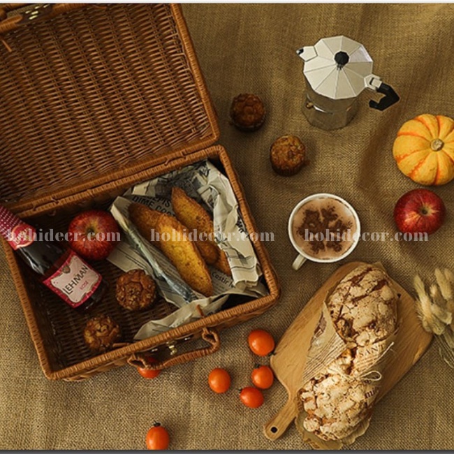👉Hãy kết hợp vải bố decor với: phông nền xi măng, vân gỗ và các phụ kiện trang trí chụp ảnh như hạt thông, bông lúa mạch, túi vải bố, khay gỗ,...
