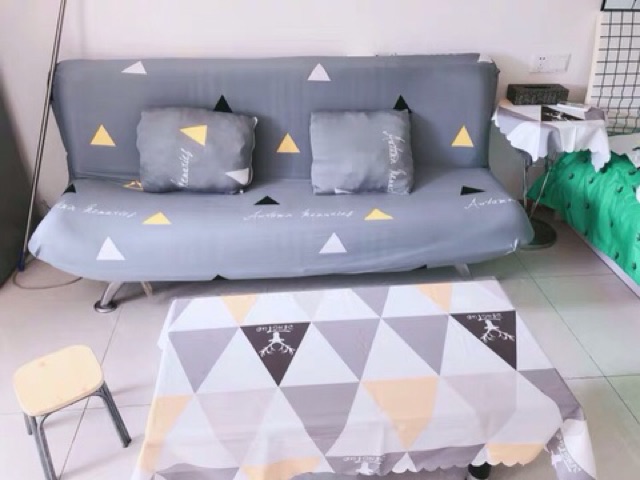 Nhà cửa & Đời sống > Nội thất > Ghế sofa || Vải bọc ghế sofa bed hoạ tiết tam giác be nâu đan giản hiện đạiCòn hàng