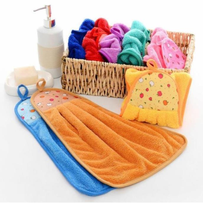 Nhà cửa & Đời sống > Đồ dùng phòng tắm > Khăn mặt, khăn tắm, áo choàng tắm > Khăn mặt || [VẢI CHUẨN] Khăn lau tay treo tường nhà bếp hình chiếc váy màu sắc xinh xắn dễ thương hai mặt loại lớn 26x42cmCòn hàng