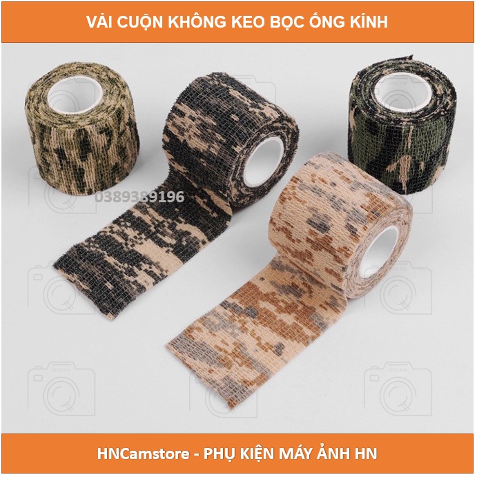 Một cuộn vải camo có chiều dài 2,5m có thể kéo dãn thành 5m, chiều rộng 5 cm. Có thể quấn nhiều lens ống kính.