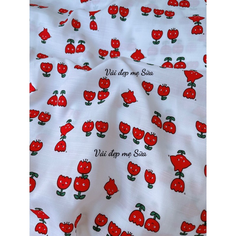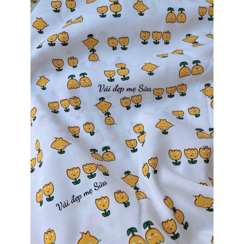 Giới thiệu vải đũi mềm mịn chậu hoa cute