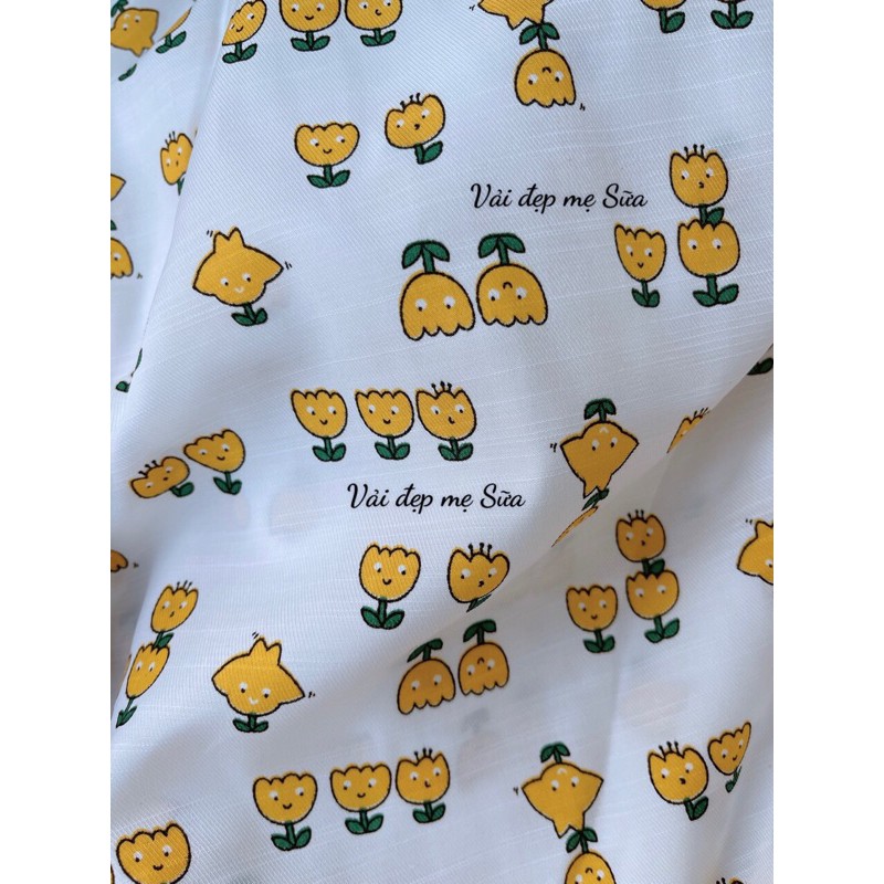 vải đũi mềm mịn chậu hoa cute