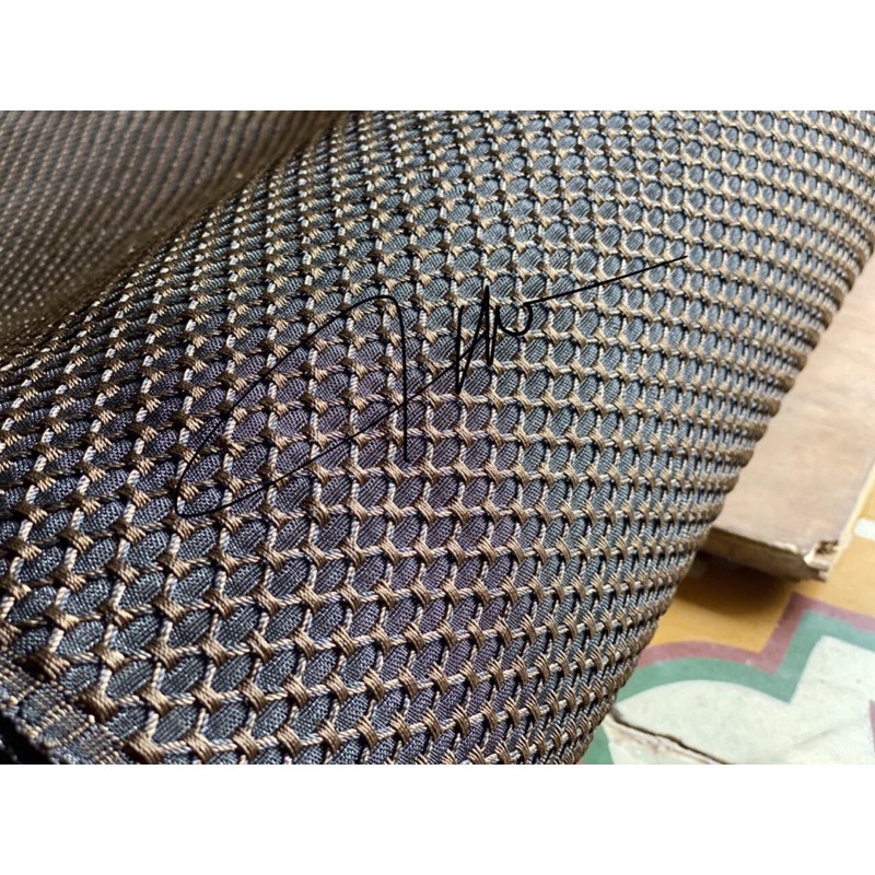 Vải ê căng quả trám cao cấp , chuyên dùng cho các dòng loa tanoy và các dòng loa cổ.Vải được cấu tạo 2 lớp gồm các sợi cước đen nhỏ dệt lại cùng 1 lớp sợi polyester màu vàng ánh đồng .