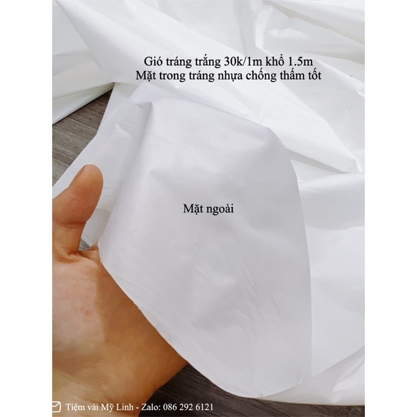 Vải gió tráng vừa trắng tinh tráng nhựa vừa mềm chống thấm cực tốt khổ 1.5m30k/1m khổ 1.5m