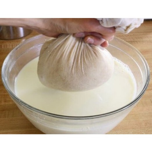 2. Túi lọc sữa đậu size 24x 36cm: Lọc ra nước đậu tinh sau khi xay để nấu sữa đậu nành hoặc chế biến món ăn từ đậu nành. Nếu bạn muốn thành đậu phụ hãy cho đường nho hoặc dấm chanh vào sữa đậu để tạo kết tủa rồi với lấy kết tủa cho vào khuôn ép thành miếng.