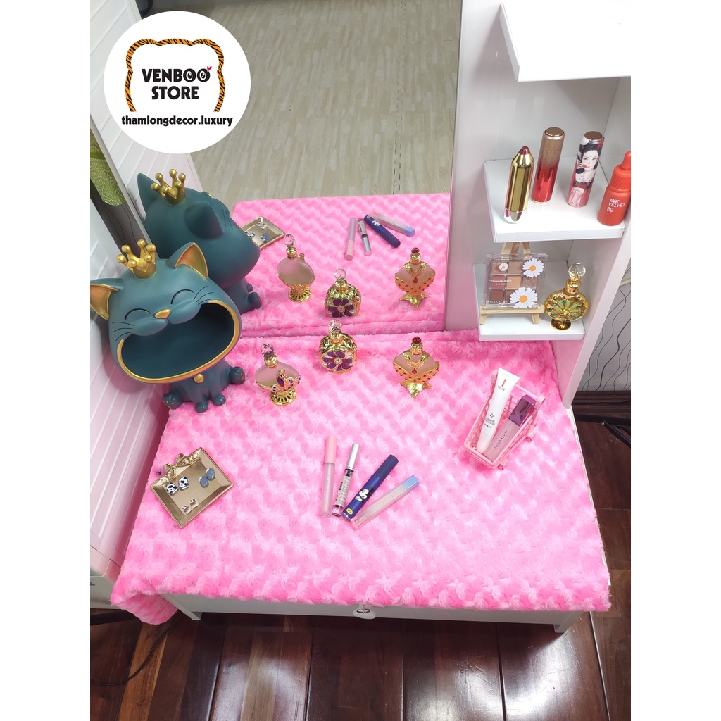 1m x 1m6 Khăn trải bàn decor bàn trang điểm | vải lông thú bông crunchies | Hồng xoắn Sweety