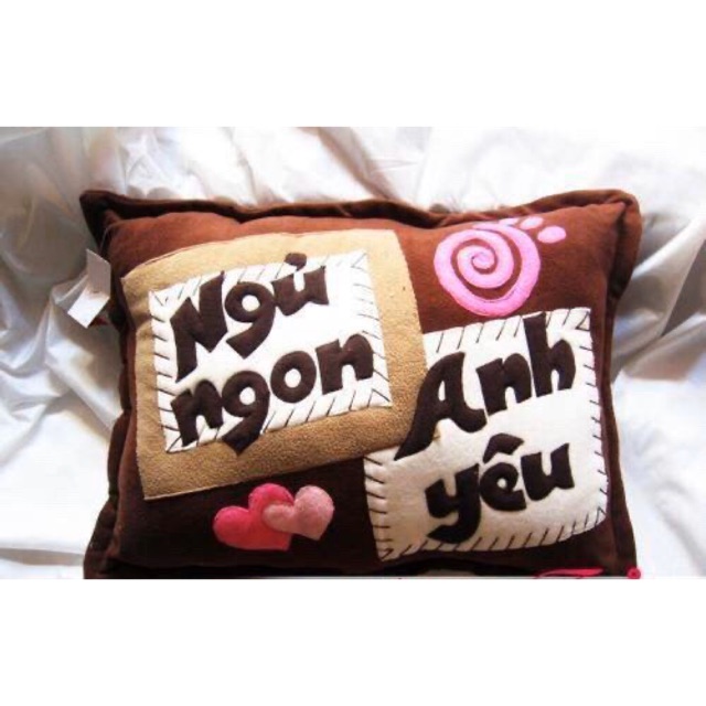 🌻Mẫu gối Ngủ Ngon Anh Yêu được nhiều bạn thích với style đơn giản, màu sắc ngọt ngào
