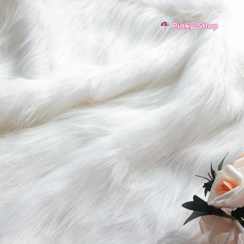 Vải lông thú nhân tạo cao cấp giá rẻ màu trắng xám hồng làm thảm trang trí chụp hình hoặc may áo lông ấm