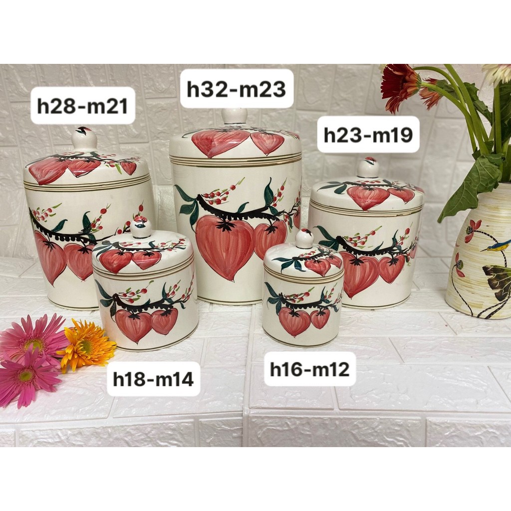 Nhà cửa & Đời sống > Bộ đồ bàn ăn > Dĩa || Vại muối dưa cà hình quả đào đỏ gốm sứ Bát TràngCòn hàng