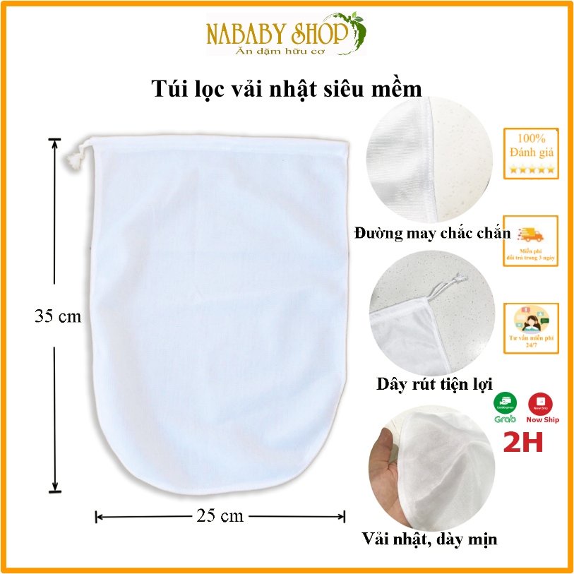 👉 Túi làm bằng chất liệu vải Nhật, chuyên dụng nên xét về chất lượng các chị khỏi lo nhé. Trước giờ mình cũng hay sử dụng khăn xô 3 lớp để lọc, nhưng xài túi lọc này tiện dụng và lọc hiệu quả hơn