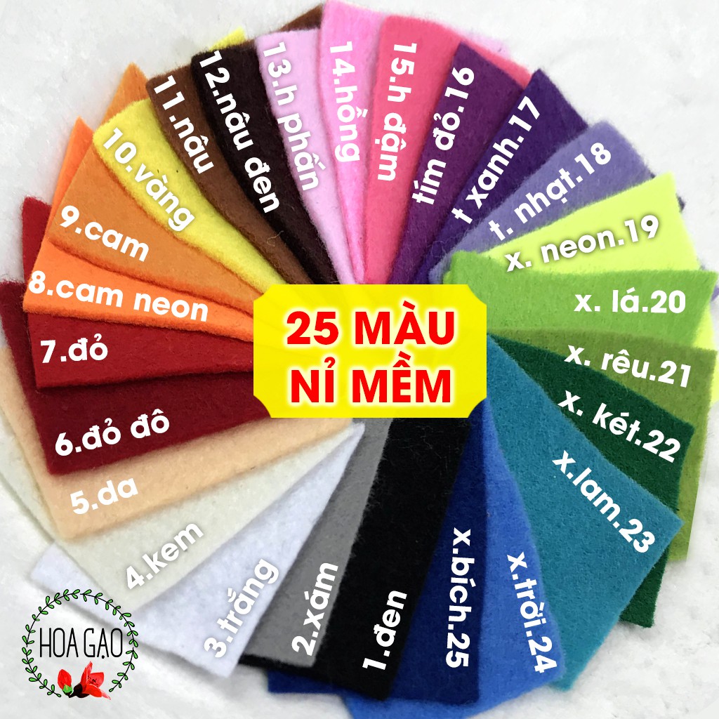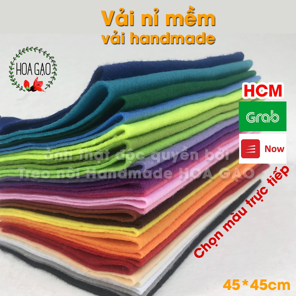 Vải nỉ làm đồ handmade, vải nỉ mềm 45x45 cm, chất liệu vải khá cứng cáp, không bị tưa chỉ ở các đường cắt giúp chúng ta dễ may, cắt dán mà không cần vắt sổ. Có thể giặt, an toàn khi sử dụng💋 Thông tin sản phẩm: