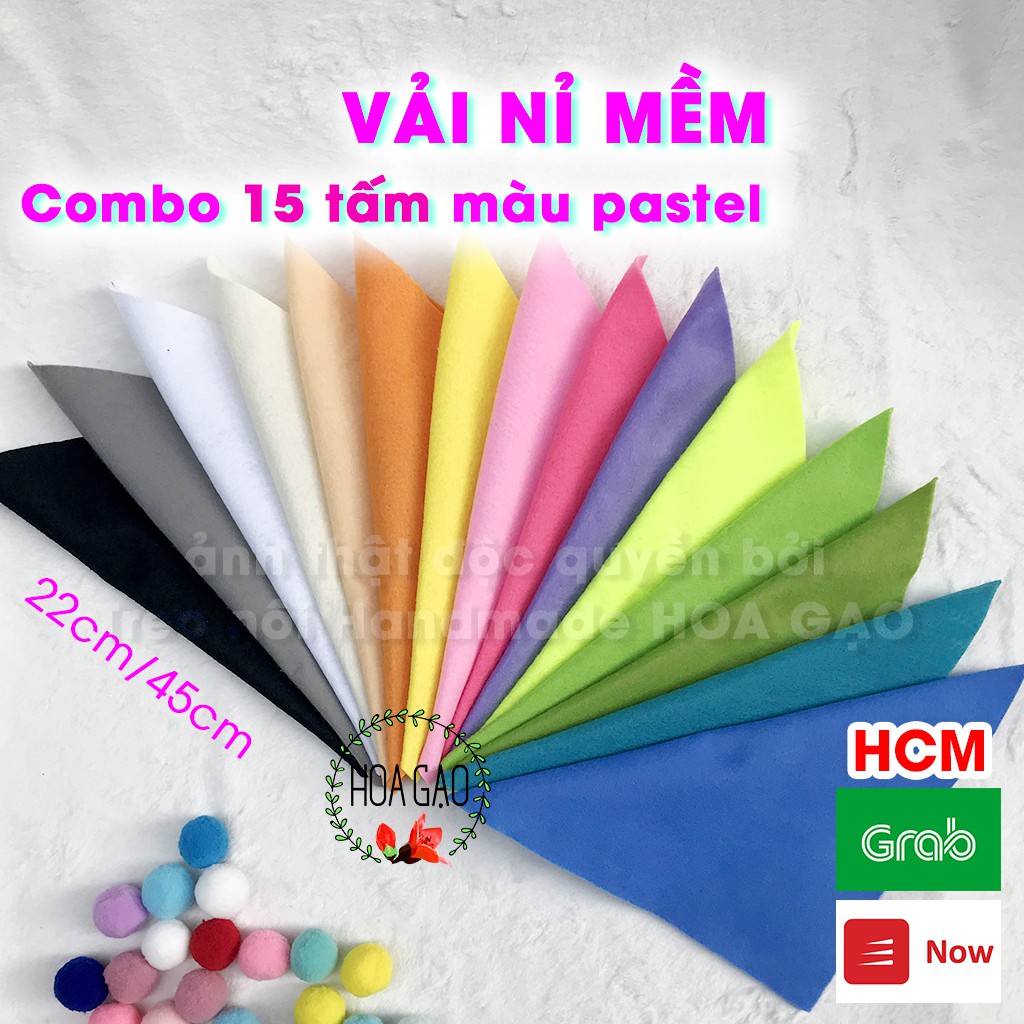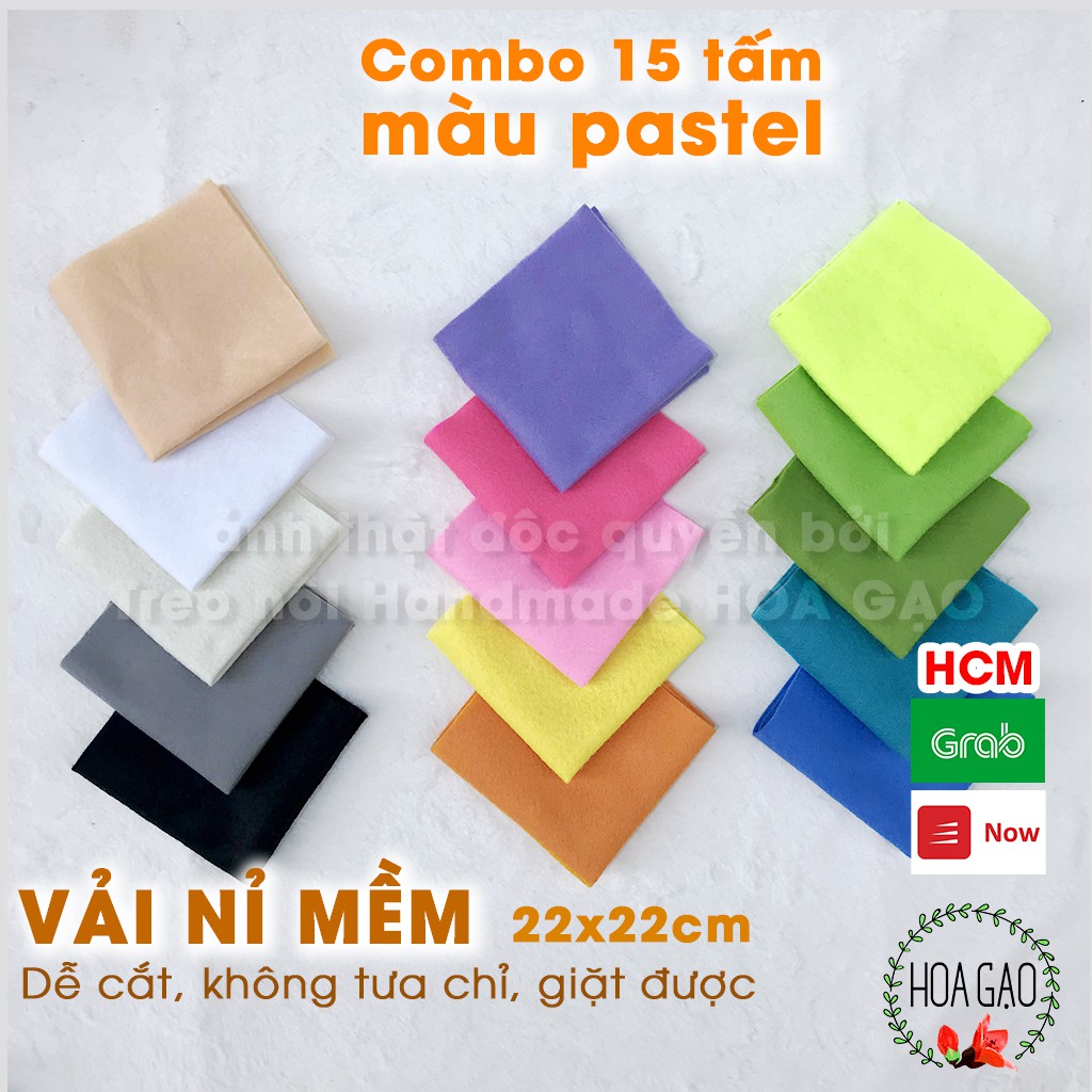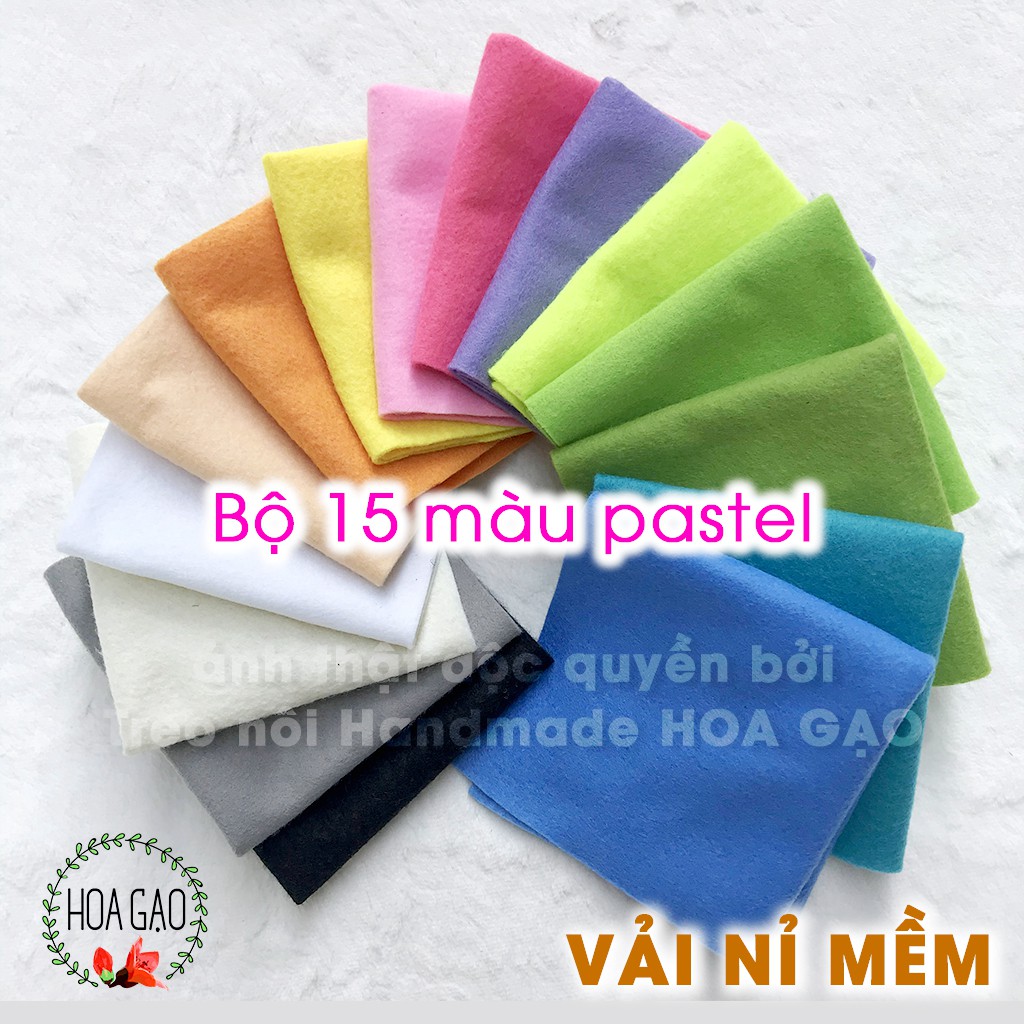 Giới thiệu Vải nỉ mềm, combo 15 tấm 22cm HOA GẠO GNMB2A màu pastel làm hoa vải, nơ kẹp tóc, vải dày không tưa chỉ