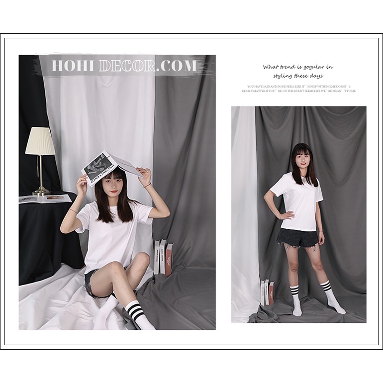 👉Với những chủ đề khác nhau sẽ cần những loại phông khác nhau. Ví dụ như chụp thời trang trẻ thì chọn những loại Phông nền chụp ảnh kết hợp những màu tương phản: Trắng - Đen - Xám, ...