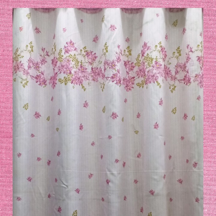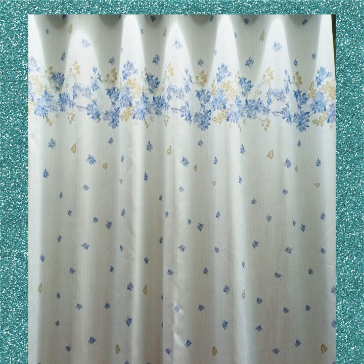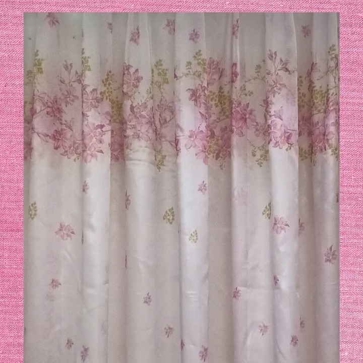 Mô tả: Vải rèm có 2 màu xanh và hồng. Có voan đồng bộ in họa tiết giống hệt vải.
